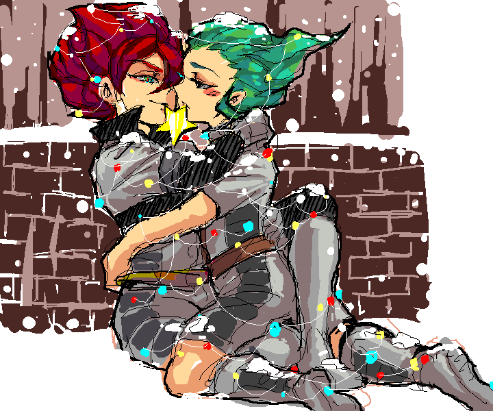 二人が赤と緑でクリスマスカラーと聞いて なるほど!! とおもって描きました(∩´∀`)∩ あんなに描いてたのに 描き方忘れてて… 泣けた;;