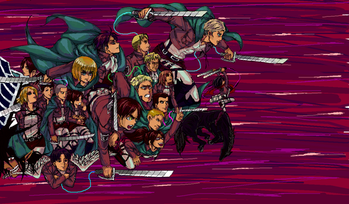 密かにずっとやりたかったパロ またか…といわれてもしかたないぐらいラスボスパロがやめられません!! もっと詰め込めるものあったかもしれないと課題が残るモノになりましたが まあ満足です^^ 団長と兵長がわりとかっこよく描けたかなと 自己満足 もっとやりたいいいいいいい こうゆうのは合作でするべきなんだろうなぁ